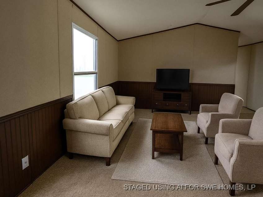 Check out this gorgeous three bedroom, two bathroom mobile home available in Cleveland, TX! This property sits within a small gated mobile home community with two entire acres of land. When you approach the home you are greeted by the steps that lead inside. The family room is incredibly spacious and offers a fantastic space to host gatherings with friends and family. The kitchen serves as the heart of the home with a center island, wooden cabinetry, and laminate countertops. There is also built-in television area! Each room is generously sized and the best part? The amazing expanded covered back patio that overlooks the large backyard! Here you will truly enjoy the peace in quiet of a remote lifestyle. Contact us today for more information!