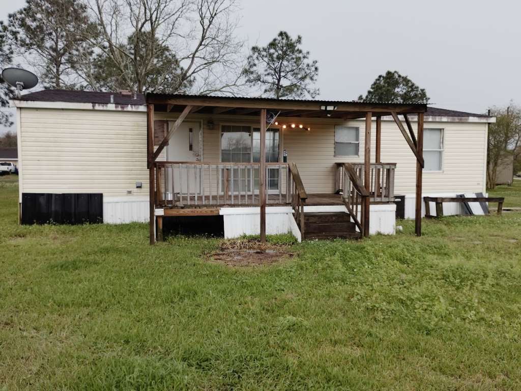 Welcome to this inviting mobile home, offering a perfect blend of comfort and functionality in a serene setting. The elevated ceiling creates a spacious feel, seamlessly connecting the family room, kitchen, and dining area. Enjoy the convenience of a nice front porch and a backyard covered patio area, perfect for outdoor relaxation. The generously sized rooms include an owner's suite with its own bathroom featuring a separate tub and shower. The kitchen is both functional and inviting, boasting plenty of wooden cabinets and laminate counterspace. Situated on a vast 40,946 square foot lot, this property provides abundant land value and endless possibilities for outdoor enjoyment and maybe even some expansion. This home is about 20 miles form Galveston TX where there's a lively beach scene making it a wonderful investment. Contact us today for more information!