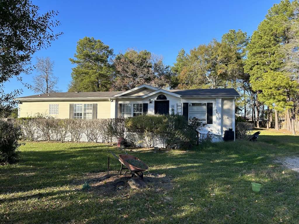 Welcome to 16319 Crockett Crossing, a mobile home retreat on a spacious 1.07-acre lot! This three-bedroom, two-bathroom home will feature fresh paint, new laminate flooring, and cosmetic repairs throughout. Enjoy cozy evenings by the fireplace in the roomy living area and a fully functional kitchen with a center island and wooden cabinets. The primary bedroom includes a private bathroom with a garden tub and separate shower, while the additional bedrooms are generously sized. Relax on the front deck or utilize the backyard storage shed. Foundation repairs are complete for peace of mind. Conveniently located near Hwy. 105 and close to convenience stores, this home offers both comfort and accessibility. Contact us today for more information!