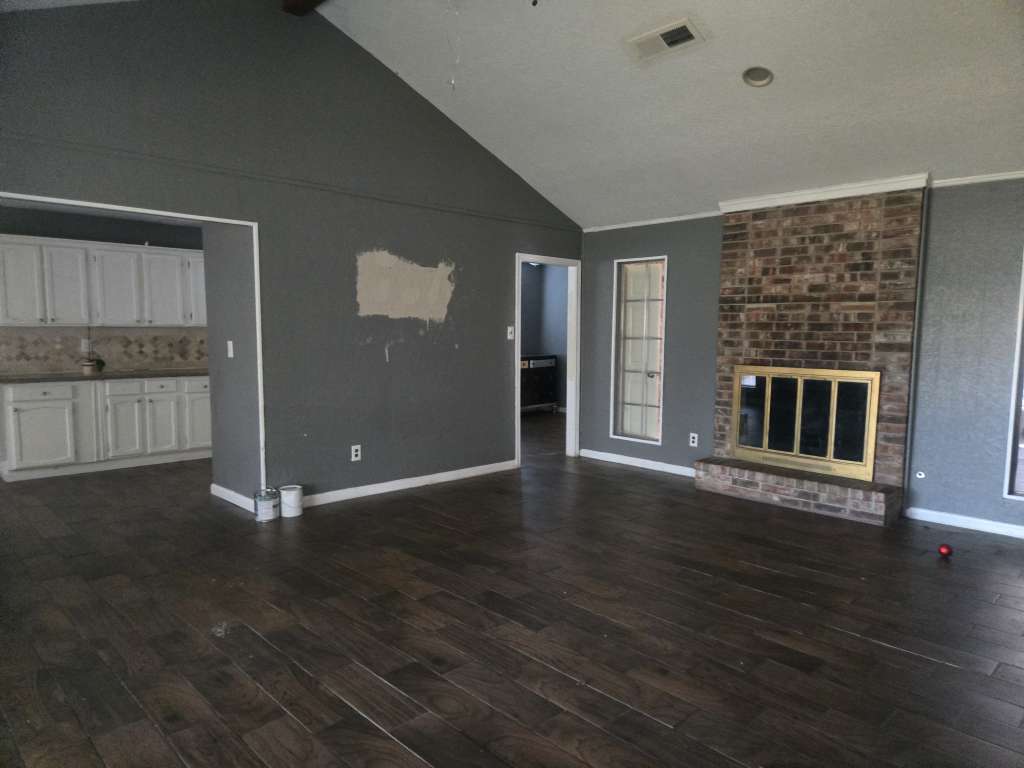 - A beautiful brick fireplace in the family room for added warmth and charm